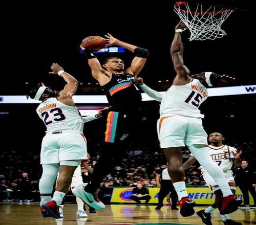 2月20日,NBA常規(guī)賽戰(zhàn)火繼續(xù)蔓延,圣安東尼奧馬刺隊(duì)坐鎮(zhèn)主場,迎來了菲尼克斯太陽隊(duì)的挑戰(zhàn)。這場比賽在賽前便備受關(guān)注,雙方在西部聯(lián)盟的排名處境截然不同。馬刺隊(duì)賽前戰(zhàn)績?yōu)?8勝16負(fù),高居西部第2位,展現(xiàn)出了極強(qiáng)的競爭力;而太陽隊(duì)則以32勝23負(fù)的戰(zhàn)績暫列西部第7位,正處于為季后賽席位奮力拼搏的階段。然而,比賽的進(jìn)程卻并未呈現(xiàn)出勢均力敵的態(tài)勢,馬刺隊(duì)?wèi){借強(qiáng)大的整體實(shí)力,從開場便占據(jù)了主動(dòng),最終以121-94的比分大勝對(duì)手,收獲一場酣暢淋漓的勝利。