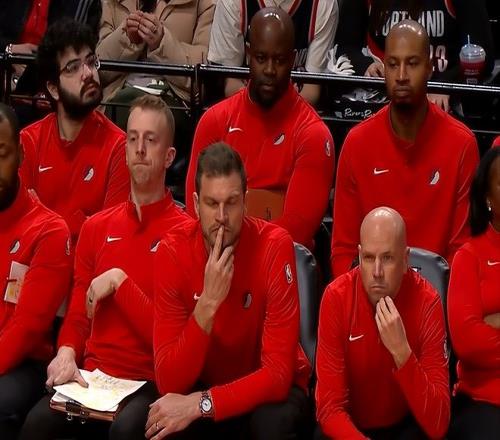不過小楊繼續(xù)拼搶,扣籃不中后,拿到進(jìn)攻籃板,再次上籃,這次裁判給了打手犯規(guī)。小楊上罰球線,罕見兩罰不中,而緊接著下一個回合中,小楊在進(jìn)攻中造成對手犯規(guī),再次獲得兩次罰球,但遺憾的是,再次兩罰全失。也就是說,短短1分鐘內(nèi),小楊扣籃扣飛+4罰全丟,鏡頭給了開拓者教練組,7個助教全都是目瞪口呆,斯普內(nèi)特直接閉眼,沒眼看??!