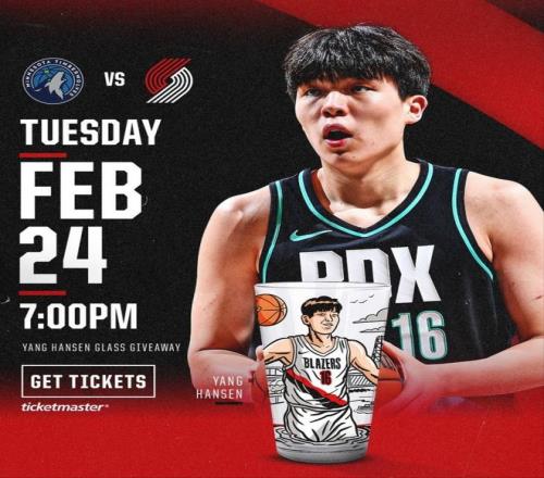但隨后開拓者的一個(gè)決定,讓大家看到了他們火速找回楊瀚森的原因。就在今天,開拓者宣布,球隊(duì)將在下一場主場對(duì)陣森林狼的比賽中舉辦“楊瀚森玻璃杯之夜”。這是個(gè)什么活動(dòng),開拓者介紹說,是指前5000名到場的觀眾,將獲得一個(gè)楊瀚森的紀(jì)念玻璃杯。同時(shí)開拓者官網(wǎng)和現(xiàn)場也將上售賣同款玻璃杯,售價(jià)是6.99美元。